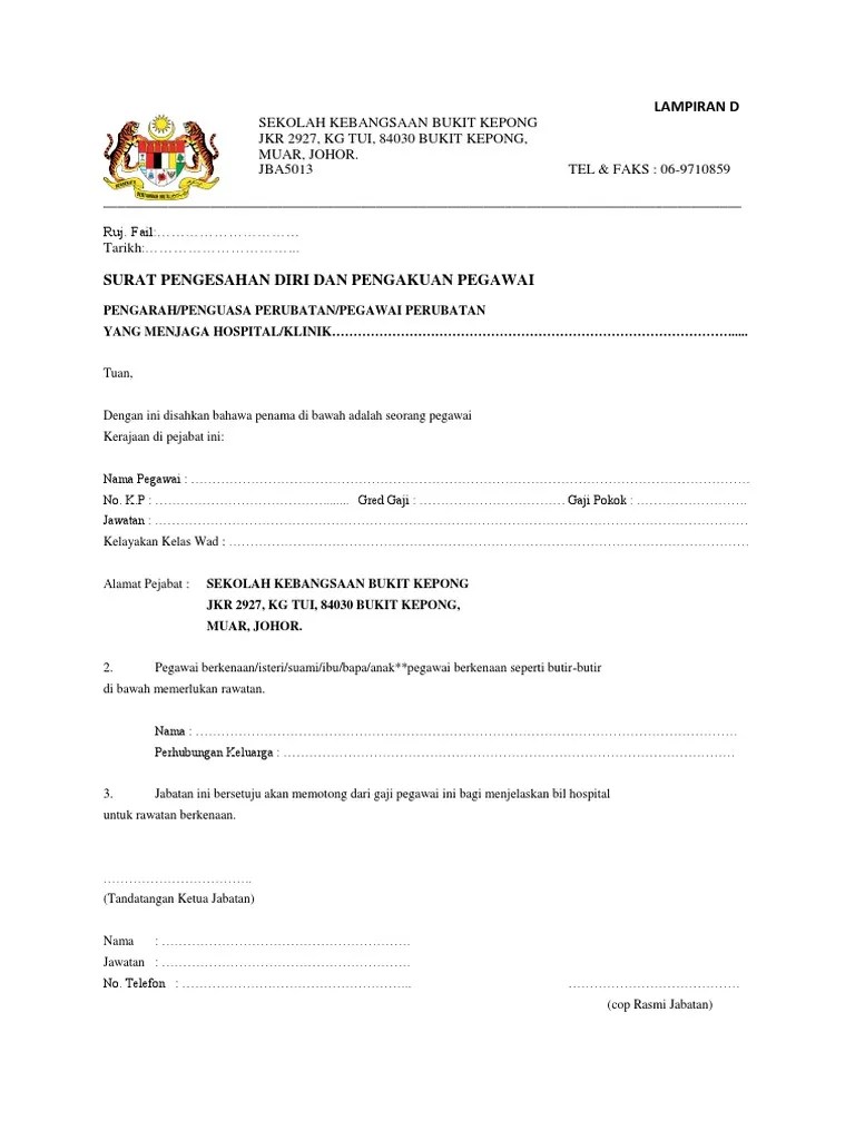The collection that comprising chosen picture and the best among others. Prosedur ini berkuatkuasa mulai tarikh surat pekeliling ini dikeluarkan. Contoh surat pengesahan masuk hospital contoh surat. Contoh surat kelulusan cuti sakit 90 hari nusagates. Sekiranya penama tidak dapat hadir, surat wakil, salinan kad pengenalan penama bersama resit asal hendaklah dikemukakan semasa tuntutan dibuat. Contoh surat pengesahan hospital surat . Contoh surat pengesahan masuk wad hospital . Contoh surat pengesahan masuk hospital contoh surat. Surat rasmi dari hospital surasm. Ketahui kepentingan dan kegunaan time slip yang diterima semasa rawatan di klinik hospital kerajaan sihatkini.